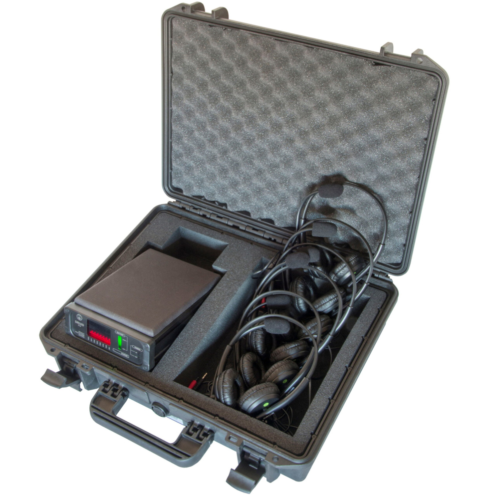 • Tecnologia: Non si tratta di semplici cuffie, ma di dispositivi attivi. Il microfono integrato cattura la voce del partecipante e la trasmette elettronicamente solo agli auricolari degli altri partecipanti.